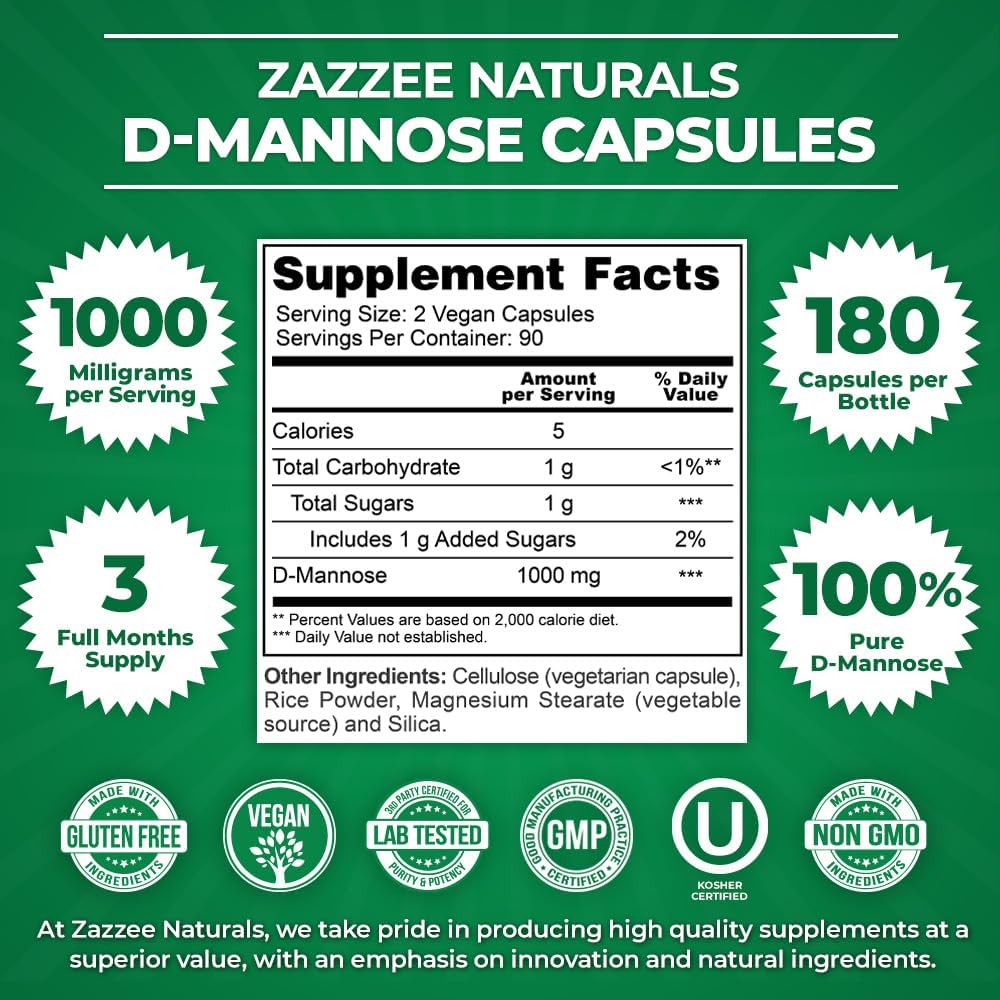 “SÓLO D-MANOSA” PARA MÁXIMA POTENCIA: La D-Manosa es la forma más efectiva de combatir y prevenir las infecciones del tracto urinario. Nuestras cápsulas de D-Manosa contienen solo D-Manosa, sin incluir otros aditivos como extracto de diente de león o jugo de arándano. Estos otros ingredientes pueden sonar bien, pero debilitan la potencia del producto ocupando espacio que podría utilizarse mejor para más D-Manosa, que es muchas veces más efectiva en el tratamiento de las infecciones del tracto urinario.
